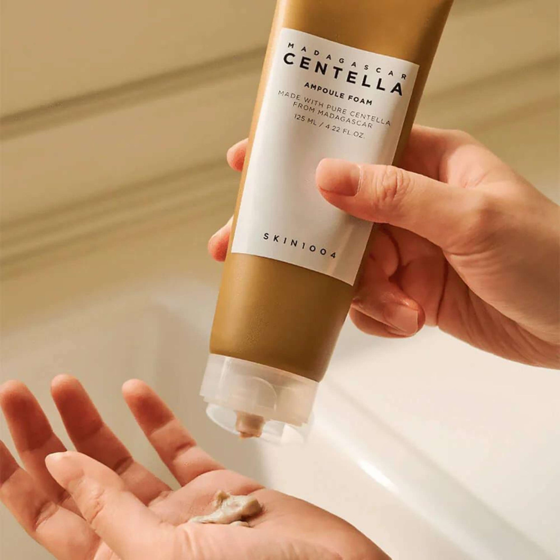 La Madagascar Centella Ampoule Foam de Skin1004 es una espuma limpiadora ideal para quienes buscan una limpieza efectiva pero suave. Formulada con un 33 % de centella asiática pura de Madagascar, este limpiador calma instantáneamente la piel irritada mientras elimina impurezas, residuos de maquillaje y exceso de sebo sin alterar la barrera protectora.
